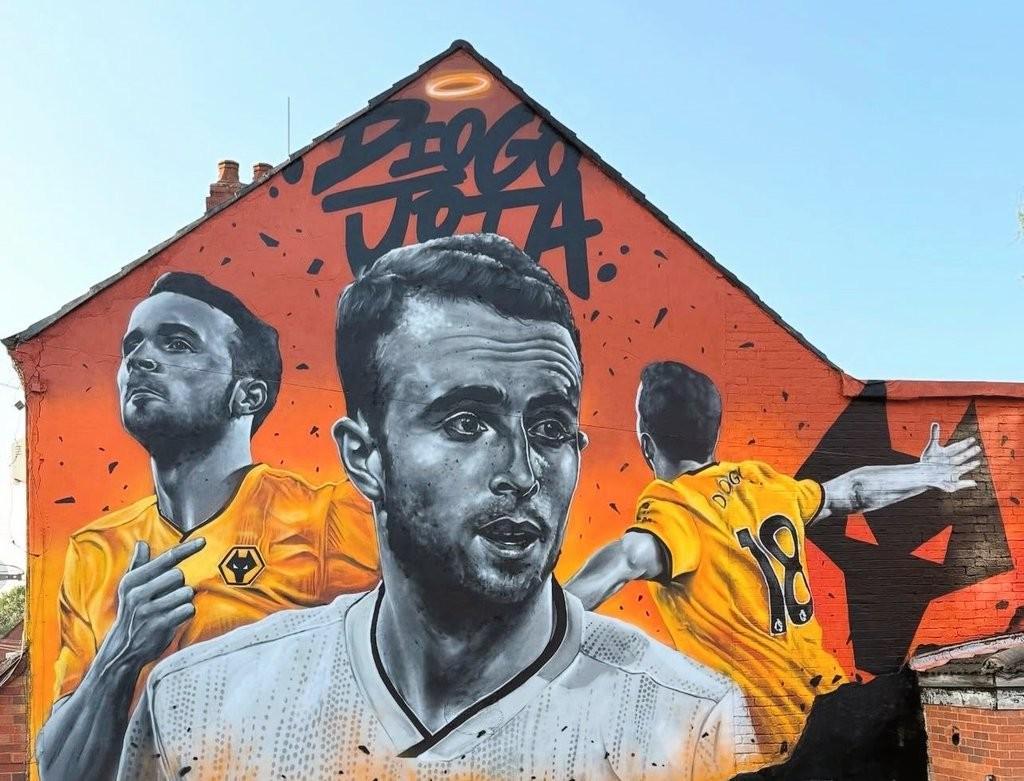 狼队球迷制作壁画纪念若塔,地址位于狼队主场正对面