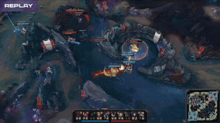 比赛第17分钟,两队爆发河道团。Keria波比回身闪现钉墙Jiwoo希维尔,T1一波打出3换3