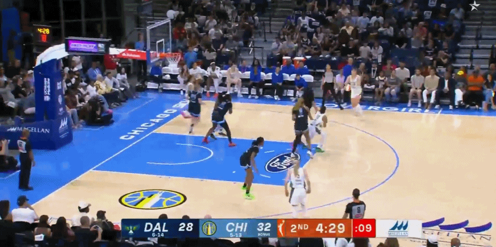 李月汝半场75%高效得到7分,飞翼半场落后天空8分